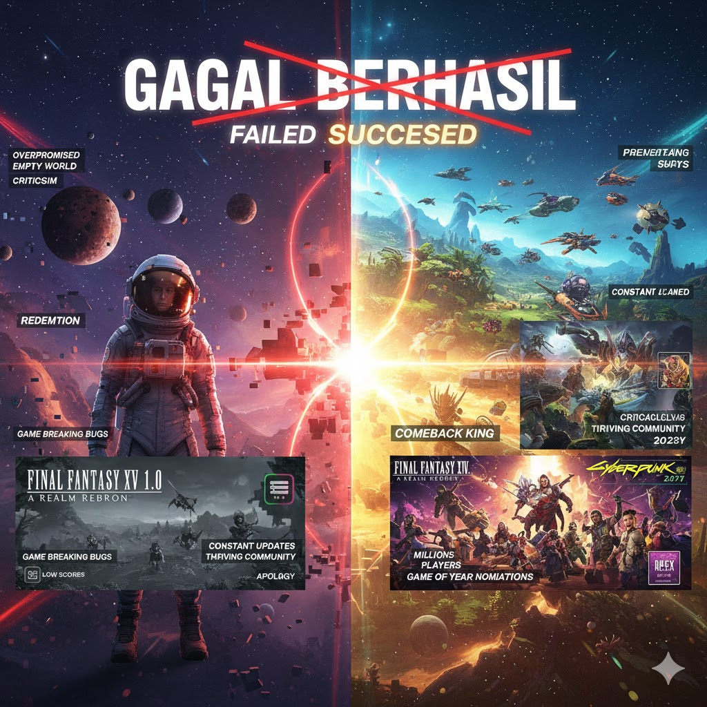 Peluncuran awal No Man’s Sky dianggap gagal. Banyak fitur tidak sesuai ekspektasi. Kritik besar berdatangan. Namun developer tidak menyerah. Update demi update diberikan hingga akhirnya game ini berkembang menjadi salah satu judul eksplorasi ruang angkasa terbaik.